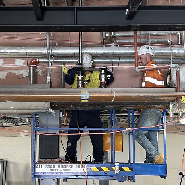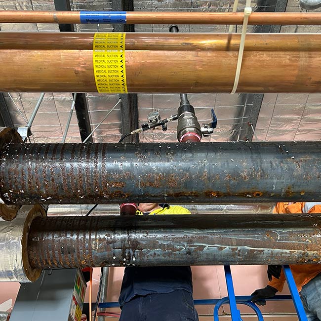 Hot tapping, or pressure tapping, is the method of making a connection to an existing pipeline without the interrupting or emptying of that section of pipe. This means that a pipeline can continue to be in operation whilst modifications are being done to it. Hot Tapping can be completed on a variety of liquids including chilled, heating and condenser water as well as waste and potable water systems.