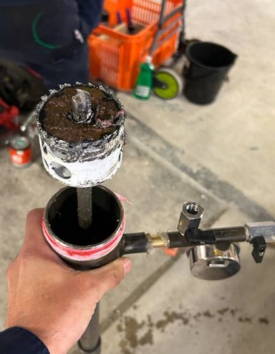 - Valve opened, hot tap completed, coupon or cut portion retained by latches on pilot drill. Pressure is contained within the hot tapping machine.